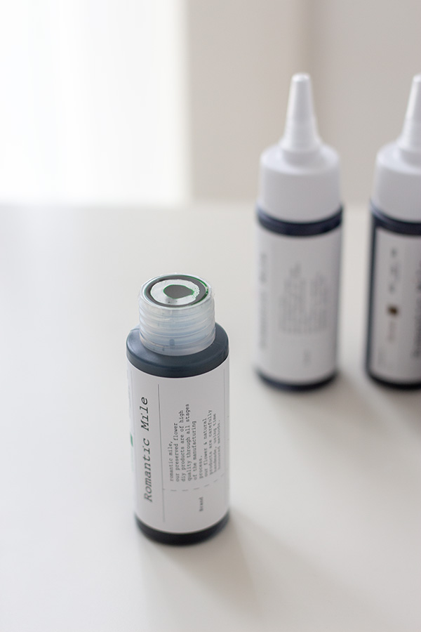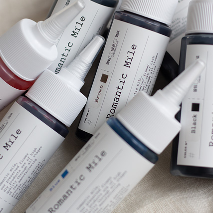 로맨틱마일 담금염료는 별도의 증류수를 혼합하지 않기 때문에 염료의 첨가량을 늘려도 건조시에 전혀 영향을 주지 않습니다.